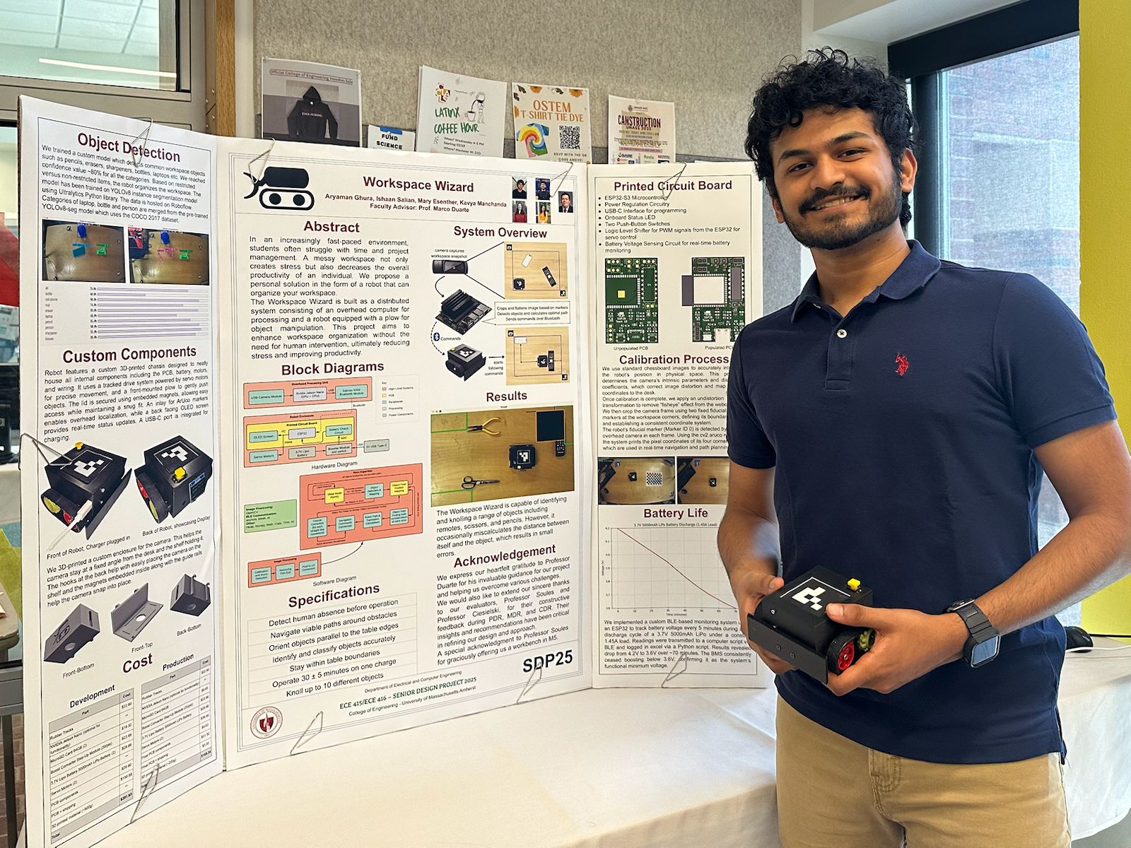 As the Mechatronics and Logistics Lead for the Workspace Wizard project, I am responsible for overseeing the integration of various hardware components and ensuring the effective communication between the robot, overhead camera, and charging station. My role involves coordinating logistics to optimize the placement and accessibility of components, which is crucial for the project's overall efficiency. I am currently developing a robust PCB prototype that facilitates reliable Bluetooth communication and precise motor control, enabling the robot to autonomously organize the workspace. Through careful planning and implementation, I am driving the progress of our autonomous desk organization system, ensuring it meets functional specifications while adhering to project timelines.